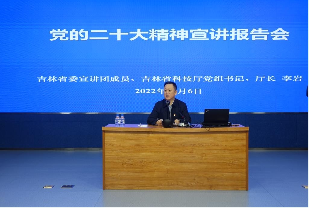 12月6日,吉林省委宣講團成員、省科技廳黨組書記、廳長李巖通過線上、線下相結合的形式,向東北地理所職工、研究生近300人宣講黨的二十大精神。專題輔導報告會由所長姜明主持。