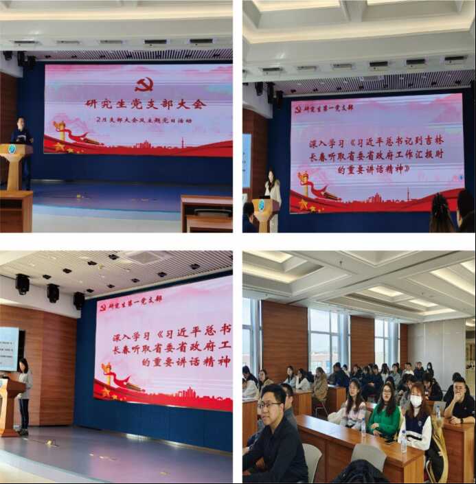 2月26日,研究生第一、二、三黨支部在綜合樓六樓報告廳聯(lián)合開展黨員大會,學(xué)習(xí)貫徹習(xí)近平總書記在聽取吉林省委和省政府工作匯報時的重要講話精神,活動由研究生黨總支書記苑春宇主持。