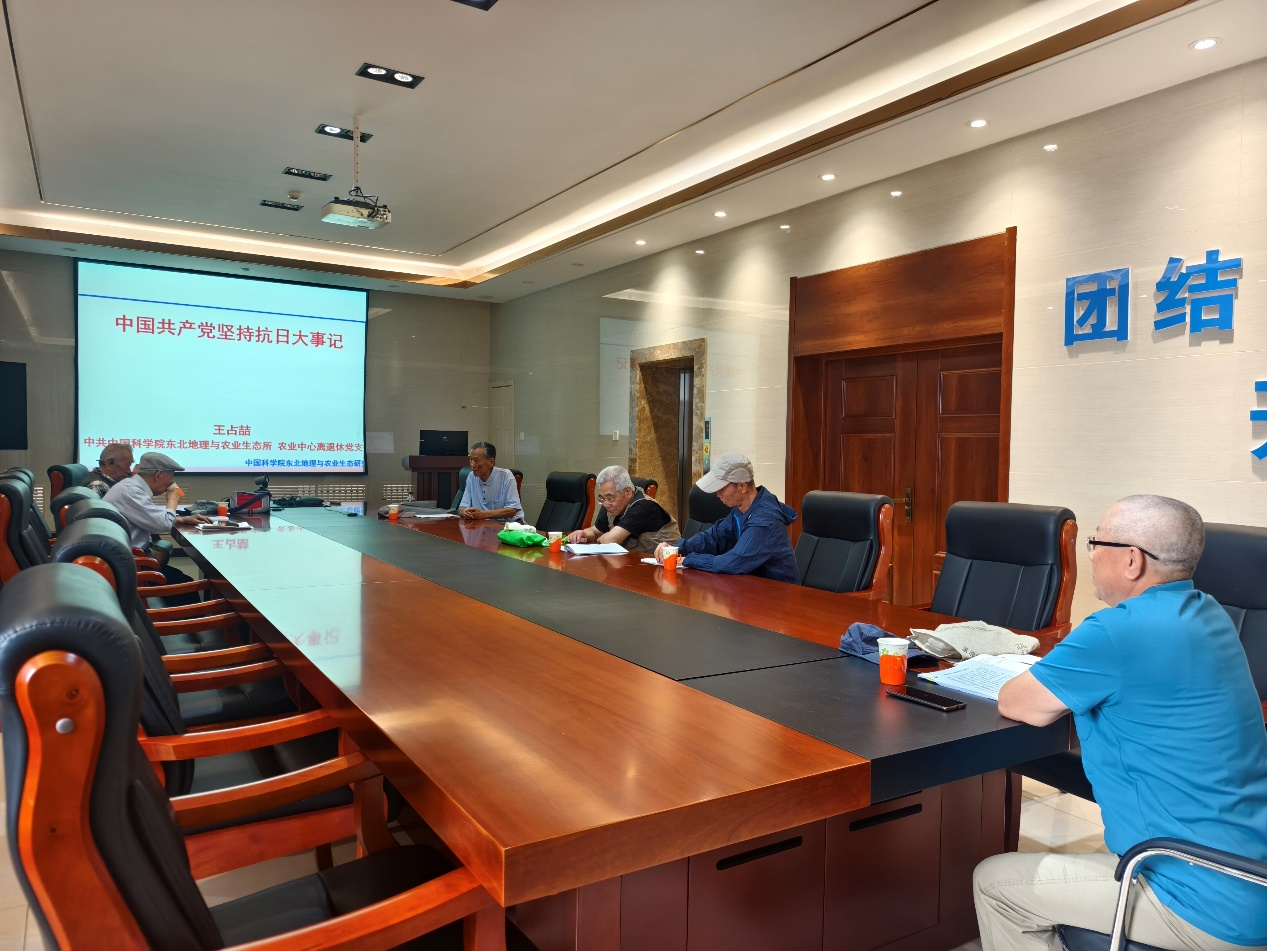 8月28日,農業中心離退休黨支部在綜合樓六樓會議室召開主題黨日活動紀念中國人民抗日戰爭暨世界反法西斯戰爭勝利80周年,活動由支部副書記王占哲主持。