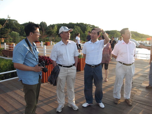 此前,丁仲禮副院長曾幾次來到東北地理所考察時都指出,要在三江平原沼澤濕地生態(tài)試驗站基礎上,加強濕地監(jiān)測研究網(wǎng)絡野外平臺建設。因此東北地理所從去年就積極籌劃建設覆蓋東北地區(qū)典型濕地類型的濕地監(jiān)測網(wǎng)絡,以三江平原沼澤濕地生態(tài)試驗站為中心,增設興凱湖湖濱濕地、大興安嶺山地沼澤、盤錦濱海濕地監(jiān)測站點,采取了與地方共建方式,目前這3個新增監(jiān)測站點的建設工作均進展順利。 據(jù)了解,興凱湖是中俄兩國界湖,面積達4300多平方公里,其類型屬于構造湖,濕地面積廣大,已經(jīng)被列為國際重要濕地,是開展湖濱沼澤濕地研究的典型場所。鑒于興凱湖濕地的突出重要性,2008年東北地理所與雞西市政府簽訂了“關于共建興凱湖自然保護區(qū)濕地觀測站的協(xié)議”,率先開展對興凱湖濕地的觀測與系統(tǒng)科學研究。8月15日下午,丁仲禮副院長來到興凱湖濕地,在雞西市副市長矯健等地方領導的陪同下,首先考察了興凱湖小湖區(qū)。矯健向丁仲禮介紹了雞西市經(jīng)濟社會發(fā)展概況,特別是小興凱湖對雞西市農(nóng)業(yè)發(fā)展、水資源保障、生物多樣性保護、生態(tài)環(huán)境建設等方面的重要作用。丁仲禮強調(diào),一定要處理好小興凱湖開發(fā)與保護的關系,特別是要加強濕地科學基礎研究,做到科學保護,科學開發(fā),科學管理。