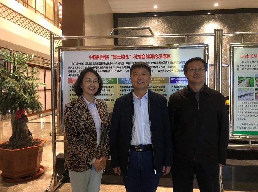 中國科學院黑土糧倉科技會戰海倫示范區的核心示范區位于綏化市。在胡春華出席全國黑土地保護現場會期間,海倫示范區項目組制作了“中國科學院黑土糧倉科技會戰”展板,與省內8個黑土地保護利用效果介紹的展板放在一起,供出席會議的人員參觀,很好地宣傳了中國科學院黑土糧倉科技會戰工作的最新進展。