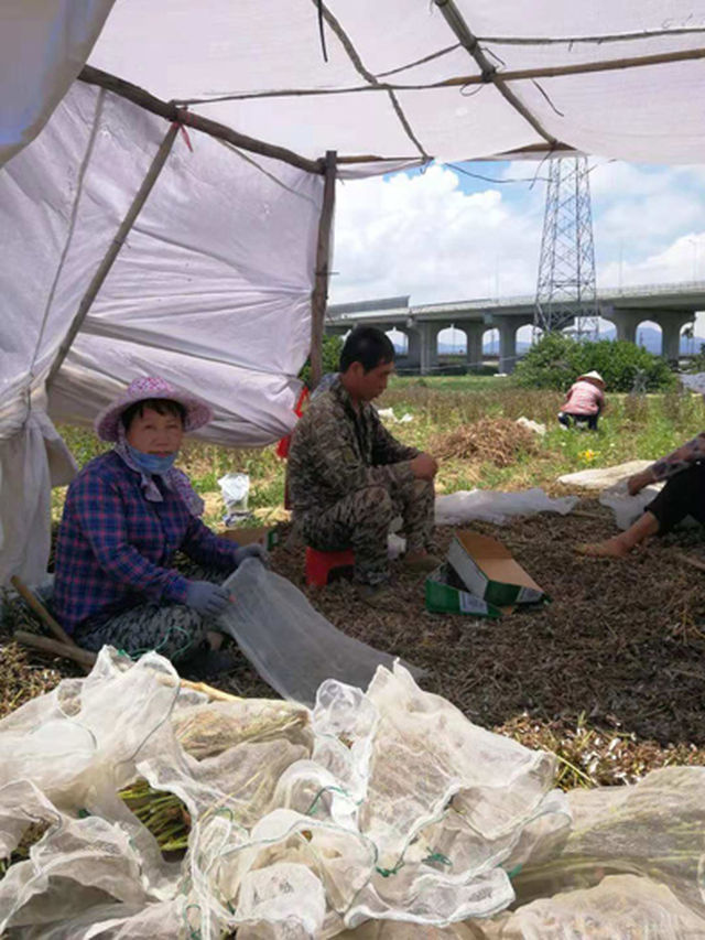 因此,她比很多農(nóng)民還要忙。收獲季節(jié),她坐在地上篩選裝袋,每一個豆莢、每一個豆粒都反復(fù)觀察。