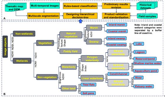 中國濕地遙感分類方法和分類流程框架圖