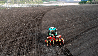 5月8日,黑龍江墾區友誼農場,一臺大馬力農機正在進行玉米播種。徐宏宇攝