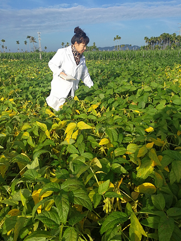 李艷華在查看大豆的田間長勢