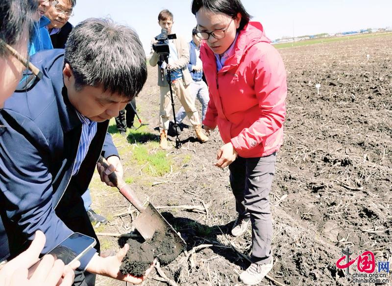 5月13日,探訪中國科學院“黑土糧倉”科技會戰“龍江模式”示范區。圖為中國科學院東北地理與農業生態研究所研究員韓曉增(左三)介紹黑土地保護情況。中科院科技攝影聯盟供圖