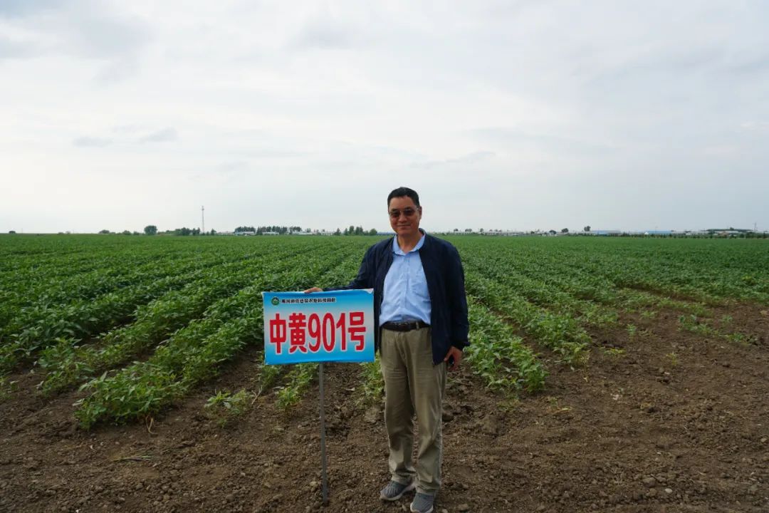 韓天富研究員在黑河與團隊選育品種合影。國家大豆產(chǎn)業(yè)技術研發(fā)中心供圖