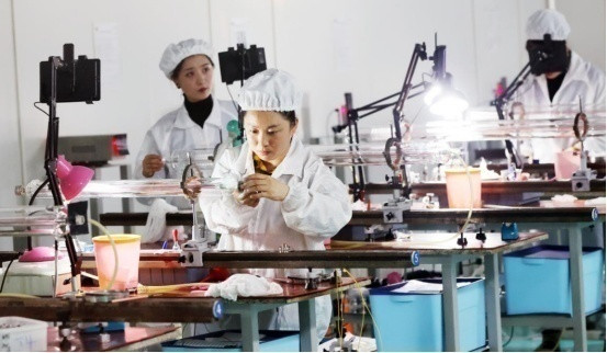 長春某激光科技有限公司的車間內(nèi),員工正在進(jìn)行產(chǎn)品生產(chǎn) 石雷/攝