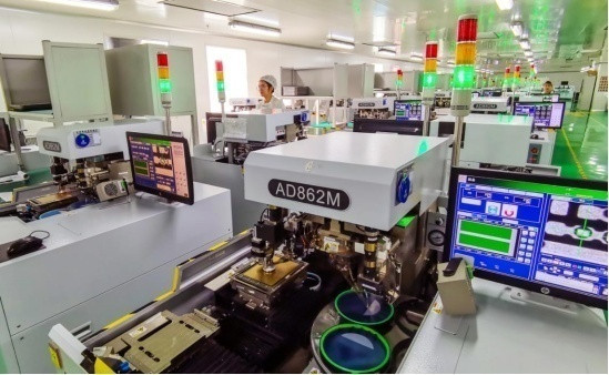 長春某電子技術(shù)有限公司員工在LED封裝車間進(jìn)行固晶和焊線操作 石雷/攝