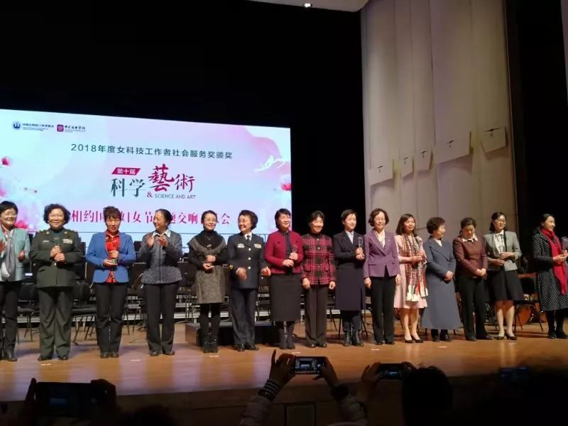 2019年3月,李艷華(左三)獲得中國女科技工作者協(xié)會頒發(fā)的2018年度女科技工作者社會服務獎。(受訪者供圖)