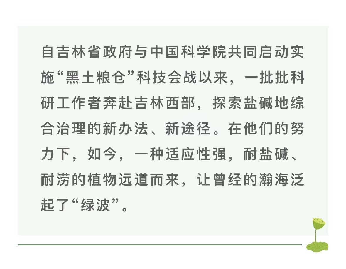 秋風(fēng)起時(shí),吉林西部,長嶺縣北正鎮(zhèn)關(guān)山屯撂荒的鹽堿地上多了一片“新綠”。看著足有一人多高的茂密青草,想著幾個(gè)月前,這里還是寸草難生的“堿巴拉”,農(nóng)戶葉樹文總覺得眼前一切美得難以置信。“我們這兒是重度鹽堿地,壓根兒沒想過能長出東西來!天天來看,都不敢相信!”