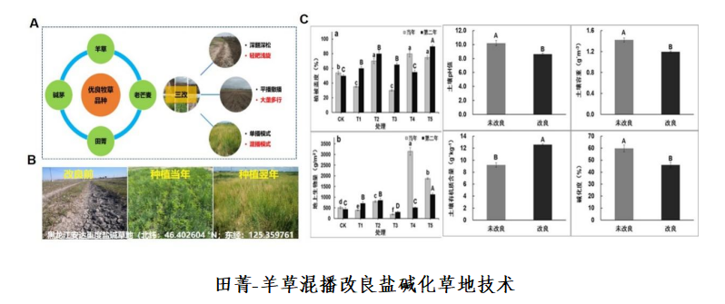 隨后,科研團(tuán)隊(duì)收集了國內(nèi)外近400份田菁種質(zhì)資源,利用野生馴化、雜交選育等方式,成功選育出6個(gè)高產(chǎn)、優(yōu)質(zhì)的田菁新品系,其中1個(gè)已通過國家草品種區(qū)域試驗(yàn)申請,并以此構(gòu)建了新型鹽堿草地改良技術(shù)。