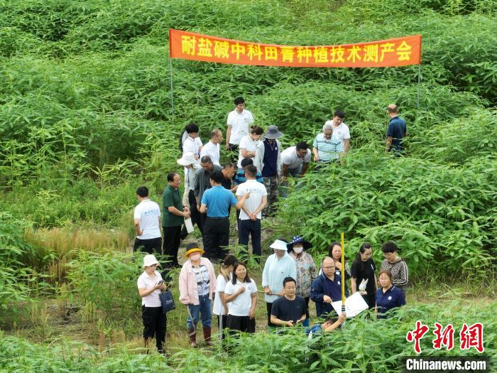此次測(cè)產(chǎn)標(biāo)志著由中國(guó)科學(xué)院遺傳與發(fā)育生物學(xué)研究所曹曉風(fēng)院士團(tuán)隊(duì)選育的耐鹽堿、肥飼兼用型中科田菁品系在貧瘠的重度鹽堿地也能高產(chǎn)。