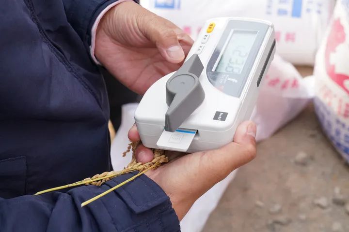 2022年9月30日,專家在黑龍江肇東東升村檢測耐鹽堿水稻的水分含量。新華社記者 王松 攝