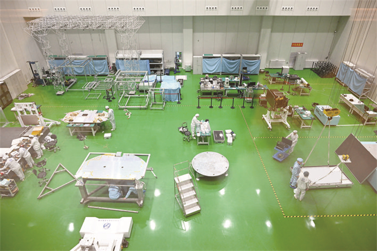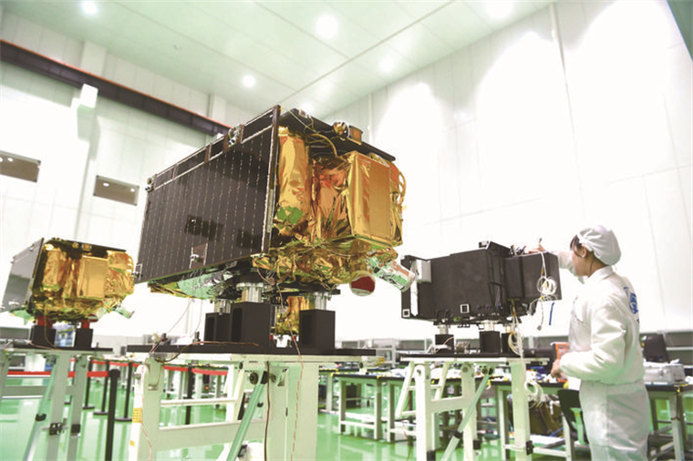 長(zhǎng)光衛(wèi)星科研人員對(duì)“吉林一號(hào)”衛(wèi)星進(jìn)行總裝測(cè)試。