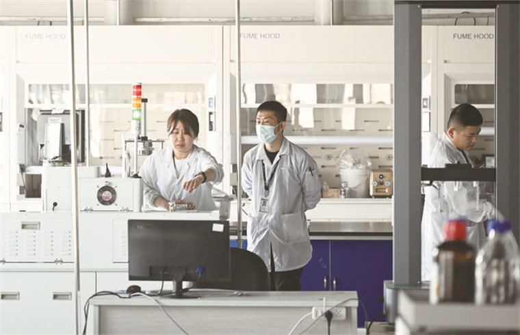 永固科技實(shí)驗(yàn)室內(nèi),技術(shù)人員在測(cè)試新產(chǎn)品性能。