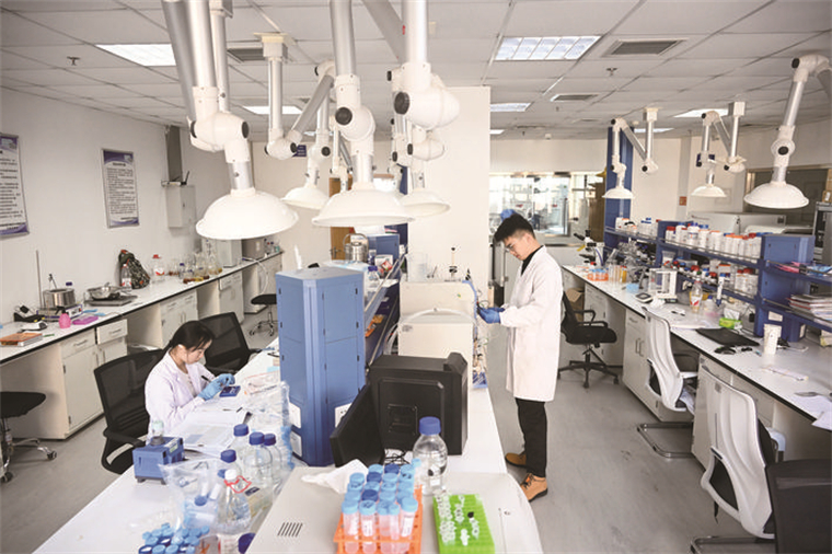 禾芫科技孵化器的開放實(shí)驗(yàn)室內(nèi),在孵企業(yè)科研人員正在研發(fā)新試劑。