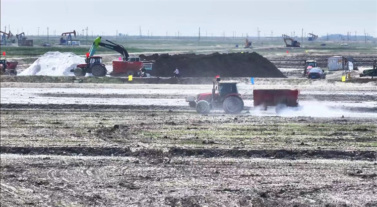 當下正是農作物生長的季節,然而在大安市四棵樹鄉一望無邊的鹽堿地上,大量的農用機械正在鹽堿地上作業,拋撒酸性磷石膏和有機肥。中標企業采用吉林大安農田生態系統國家野外科學觀測研究站暨中國科學院大安堿地生態試驗站(大安站)的“三良一體化”技術正在對該鄉735公頃(約1.1萬畝)的鹽堿地進行水田土壤改良。與不良天氣搶時間,趕進度,將水田改良后進行插秧,以達到當年改良當年種植的目標。