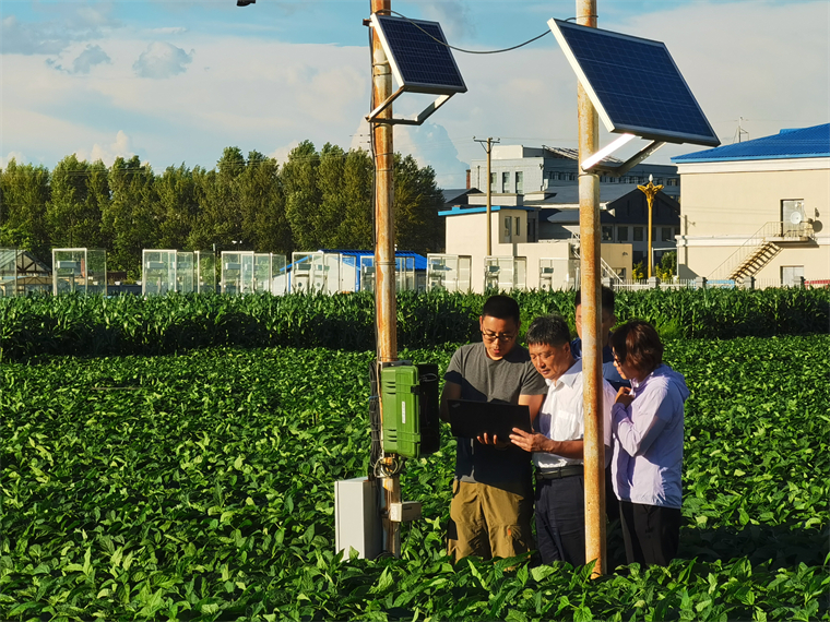 韓曉增(左二)帶領(lǐng)團(tuán)隊(duì)田間觀測數(shù)據(jù)