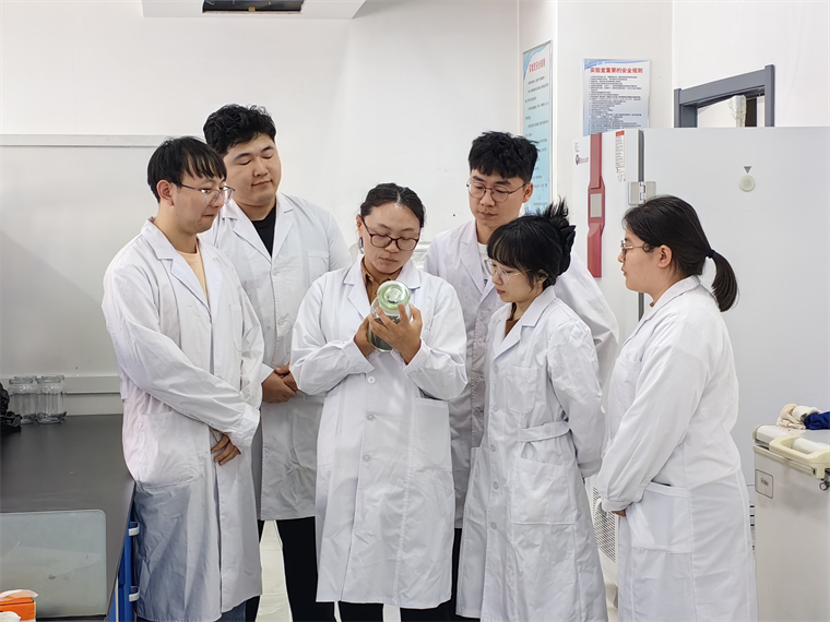 鄒文秀(左三)和團(tuán)隊(duì)成員探討實(shí)驗(yàn)情況