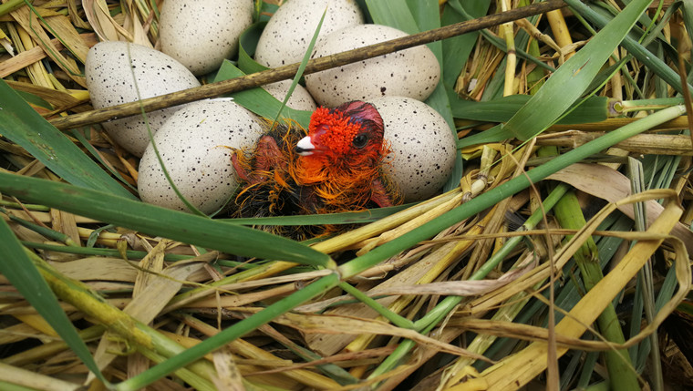 在牛心套保濕地中,一只白骨頂雞剛剛破殼而出 (文波龍攝)