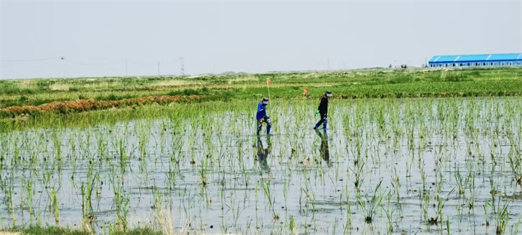 研究生在茭白地采樣