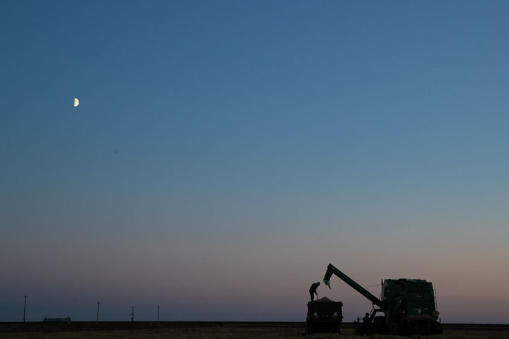 2024年10月11日,在位于黑龍江省鶴崗市綏濱縣的北大荒集團普陽農場有限公司作業區,種植戶駕駛農機進行收割作業。新華社記者張濤攝