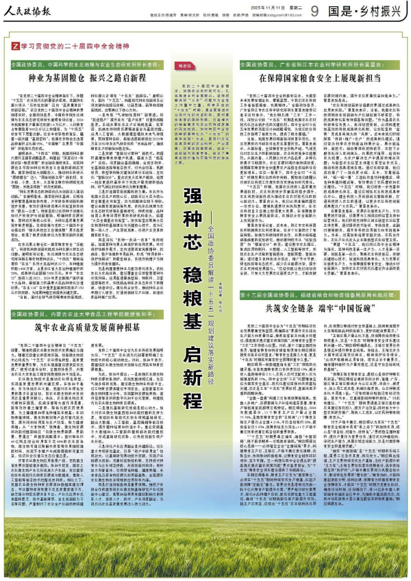 【人民政協(xié)報(bào)】強(qiáng)種芯 穩(wěn)糧基 啟新程—全國政協(xié)委員解讀“十五五”規(guī)劃建議落實(shí)新路徑