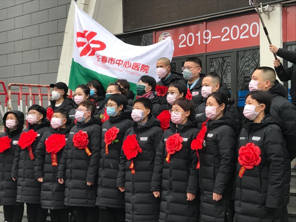 臨行前,作為長(zhǎng)春市中心醫(yī)院第三批二十名援鄂抗疫醫(yī)療隊(duì)中的九名黨員之一,宋楊同志和其他黨員同志重溫了入黨誓詞,并莊嚴(yán)宣誓:我將始終站在抗擊肺炎疫情的最前線,不負(fù)國(guó)家和人民的信任與重托,與時(shí)間賽跑,與疫情搏擊,用實(shí)際行動(dòng)踐行“以人為本、生命至上”,不惜一切代價(jià),搶救生命、救治患者,全力以赴戰(zhàn)勝疫情。