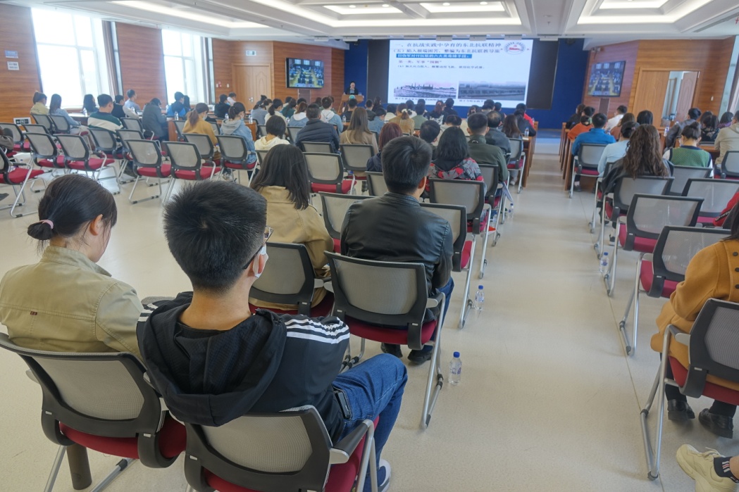 會議邀請中共吉林省委黨校高健飛同志以《東北抗聯精神及其當代價值--青年人的使命與擔當》為題作專題報告,高健飛從“在抗戰實踐中孕育的東北抗聯精神;抗聯精神是中華民族歷史上的寶貴精神財富;弘揚偉大的東北抗聯精神,肩負起新時代中國共產黨的初心和使命”三個方面深入講述了楊靖宇等抗日英雄勇赴國難忠貞報國的愛國主義精神、不畏苦難百折不撓的艱苦奮斗精神、視死如歸前赴后繼的不畏犧牲精神以及堅貞不渝抗戰必勝的信仰信念,報告獨到深刻,分析透徹,重點突出,具有很強的理論性和現實針對性,多次贏得現場青年們的熱烈掌聲。會后大家紛紛表示,通過報告對東北抗聯歷史有了進一步了解,對偉大的東北抗聯精神有了更深地感悟。
