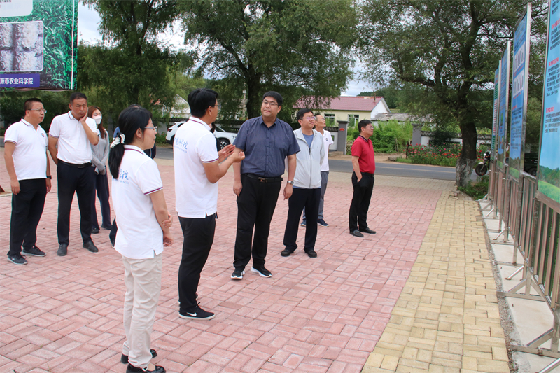 在遼河源基地,調(diào)研組詳細了解遼河源基地的發(fā)展歷程和工作成果。遼河源基地負責人李向楠介紹了遼河源水源地生態(tài)農(nóng)業(yè)工程實驗室服務“黑土會戰(zhàn)”,助力千億斤糧食工程的示范內(nèi)容與示范效應,冷建田高級工程師介紹了丘陵區(qū)水土生態(tài)修復與高效生態(tài)農(nóng)業(yè)發(fā)展模式、以矮稈密植作物為主體的糧豆輪作模式及玉木耳生態(tài)高值高效特色生產(chǎn)模式。