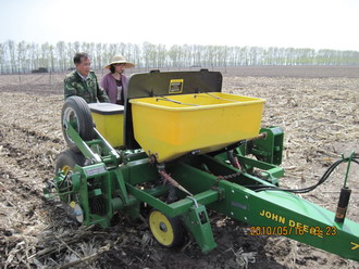 McLaughlin博士在我所德惠黑土農業試驗站工作數天,對專門為黑土有機碳與保護性耕作學科組研制的小型兩行免耕播種機進行了調試,并就施肥深度、秸稈處理等問題給予了具體的指導和幫助。