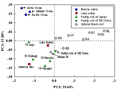 東北地理與農(nóng)業(yè)生態(tài)研究所王光華課題組在基于前期研究稻田土壤T4型噬菌體g23基因基礎(chǔ)上,針對(duì)海倫農(nóng)業(yè)生態(tài)實(shí)驗(yàn)站的不同施肥方式的定位實(shí)驗(yàn)土壤樣品,以及從7個(gè)不同緯度黑土農(nóng)田采集的土壤樣品,進(jìn)行了T4型噬菌體g23基因研究工作,成功地獲得了152條噬菌體g23基因。發(fā)現(xiàn)旱地黑土農(nóng)田g23基因分布與其在海洋和湖泊水體環(huán)境中完全不同,與稻田環(huán)境相近,但也有多個(gè)新的黑土類群存在。采用Unifrac方法分析不同環(huán)境條件下的T4型噬菌體群落結(jié)構(gòu)發(fā)現(xiàn),T4型噬菌體在陸地生態(tài)系統(tǒng)較海洋環(huán)境分布廣泛,表明陸地生態(tài)環(huán)境中具有豐富的噬菌體基因資源;另外,從T4型噬菌體在稻田和旱地黑土中群落結(jié)構(gòu)差異明顯,且其在東北稻田與東北旱地黑土中分布相對(duì)較近的研究結(jié)果,說(shuō)明在陸地生態(tài)系統(tǒng)中T4型噬菌體群落結(jié)構(gòu)受到地理環(huán)境和生態(tài)過(guò)程的雙重影響。