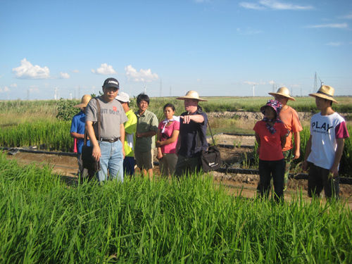 8月16日,Grattan教授前往大安堿地生態(tài)試驗(yàn)站進(jìn)行野外考察。王志春研究員等大安站科研人員及研究生分別向Grattan教授詳細(xì)介紹了大安站田間試驗(yàn)和監(jiān)測工作。Grattan教授就鹽堿地種稻,施肥定位試驗(yàn),排水試驗(yàn),耕作改良試驗(yàn)及地下水、土壤和氣象監(jiān)測等,與大家進(jìn)行了充分的交流和研討,并對(duì)鹽堿地農(nóng)業(yè)灌排水管理、耐鹽堿作物種植等方面提出寶貴意見。實(shí)地考察后,由梁正偉研究員主持,Grattan教授在大安站作了題為“Management of saline-sodic drainage water for irrigation: opportunities and challenges”的學(xué)術(shù)報(bào)告,重點(diǎn)介紹了美國加利福尼亞州土地利用和農(nóng)業(yè)發(fā)展情況,鹽漬土改良與節(jié)水研究,灌溉排水管理和再利用,灌溉水質(zhì)與土壤理化性質(zhì)等,并認(rèn)為鹽堿土改良及農(nóng)業(yè)利用是一項(xiàng)重大課題。Grattan教授表示非常愿意在相關(guān)領(lǐng)域開展合作研究。
