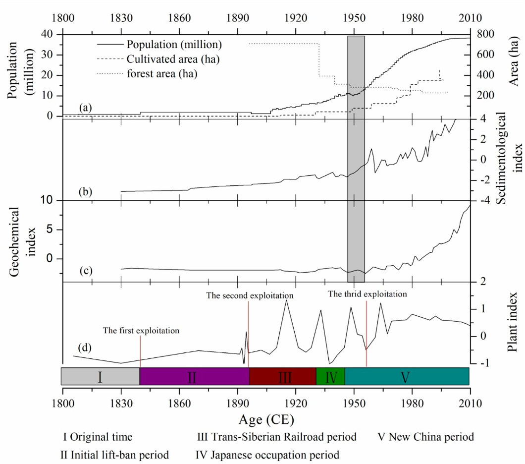 工業(yè)革命以后,隨著人類活動的加劇,氣候變化、土地和大氣污染、生物多樣性喪失等一系列全球環(huán)境問題越來越嚴(yán)重,成為了制約人類文明延續(xù)的重要因素。有學(xué)者認(rèn)為全球的地質(zhì)年代已經(jīng)進(jìn)入到了“人類世”,相應(yīng)地,如何確定人類世開始的時間也受到了人們的關(guān)注。由于我國受到工業(yè)革命的浪潮影響較晚,尤其是東北地區(qū),在清代有著三百年的封禁,人類世的起點(diǎn)有著自身的特點(diǎn)。建國以后,我國對東北地區(qū),尤其三江平原,實(shí)行積極的移民政策,轉(zhuǎn)業(yè)官兵及知識青年先后到三江平原進(jìn)行大規(guī)模的開墾。截止到2010年,有3/4的濕地轉(zhuǎn)變成了農(nóng)田,現(xiàn)存的濕地也存在著不同程度的退化和破壞。