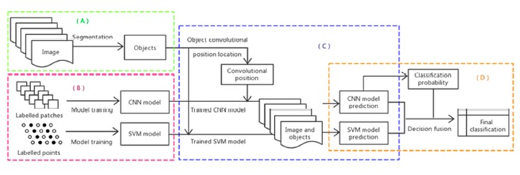 研究人員提出的面向高空間分辨率影像的OSVM-OCNN分類算法,首次在對(duì)象級(jí)別結(jié)合了淺層分類器(SVM)和深層分類器(CNN),捕獲了兩種分類器在影像特征提取方面的優(yōu)勢(shì)。使用高空間分辨率光學(xué)和雷達(dá)影像對(duì)算法進(jìn)行了驗(yàn)證,實(shí)驗(yàn)表明相比于基于像元的分類方法,OSVM-OCNN顯著地提高了土地覆被的分類精度,是一種高效率高精度的遙感分類算法。