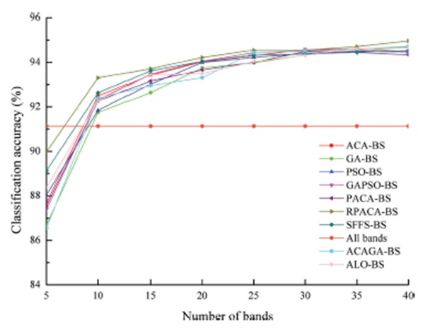 圖 3 PACA-BS及幾種基準(zhǔn)算法生產(chǎn)的高光譜圖像分類精度