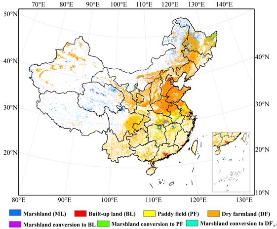 該研究成果以“Marshland loss warms local land surface temperature in China”