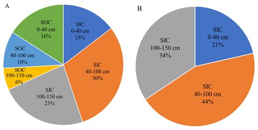 圖1土壤碳不同形態(tài)(A)和土壤無機(jī)碳(B)在土壤剖面的分布
