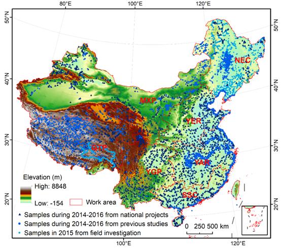 中國濕地遙感分類樣本空間分布圖