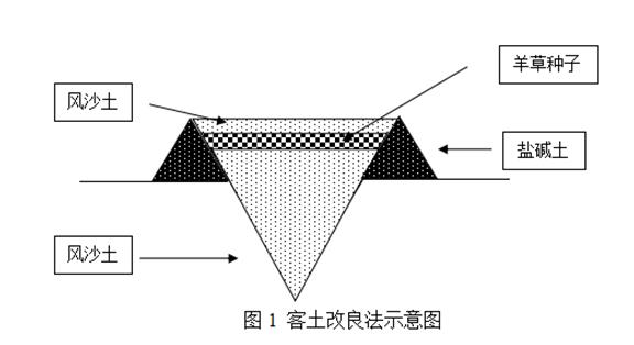 沙地土壤具有含鹽量低、結構疏松的性狀,沙地土壤與鹽堿土壤混合,能有效降低鹽堿土的鹽堿含量,限制下層鹽堿土的鹽分向上移動,實現上面覆沙層發展為適合植物生長的土壤層,在雨水的作用下,鹽分從表層土淋溶到深層土中。雖然通過表面覆沙恢復鹽堿化草地植被取得了顯著成果,但是表面覆沙用于種草成本太高,10cm厚度的覆沙厚度就意味著需要1000m3/ha風沙土,這嚴重阻礙了該技術在草地的應用與推廣。