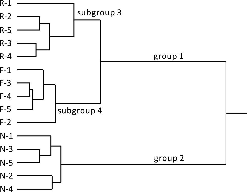 圖4 不同樣地類型(天然濕地、恢復濕地、開墾農田)土壤元素組成聚類分析