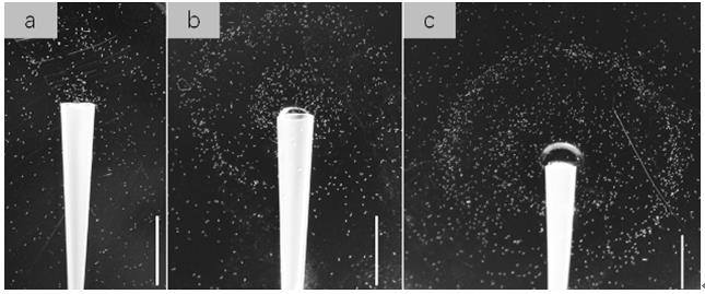 圖2: 大豆孢囊線蟲(chóng)對(duì)堿(NaOH)的趨化性 (24h)。0.1 M (a),0.5 M (b),1 M (c)