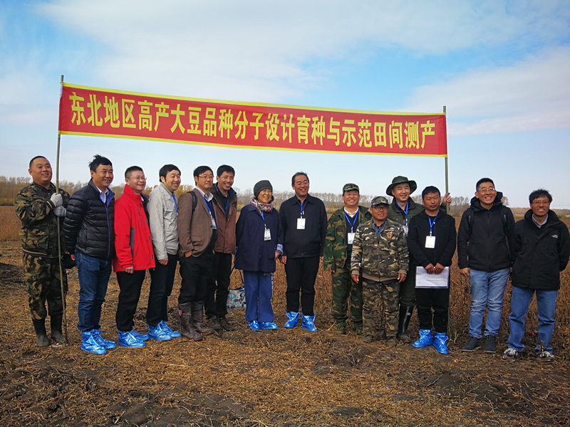 2020年10月13日,中科院東北地理所邀請專家對承擔的中國科學院重點部署項目子課題“東北地區高產大豆品種分子設計育種與示范”—初級分子模塊設計型品種“東生77”百畝示范田進行田間測產驗收,現場會在黑龍江飛龍種業有限公司良種繁育基地友誼農場第一分場進行。