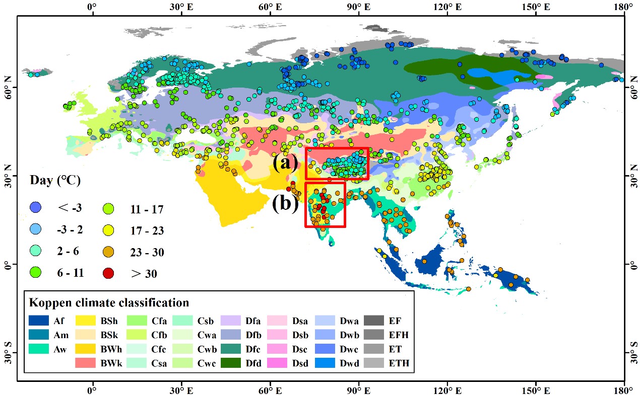 圖1 歐亞大陸湖泊溫度分布