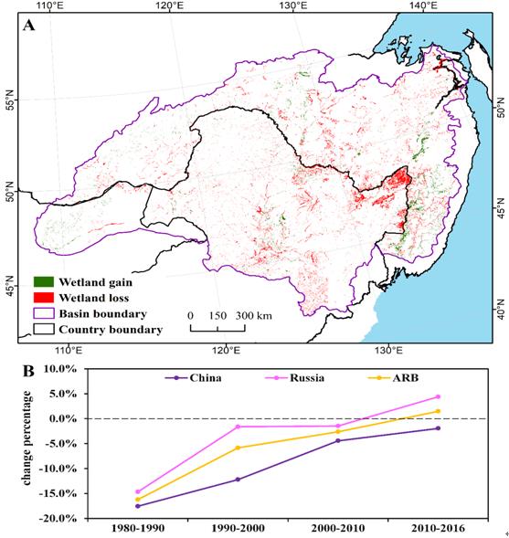 論文信息:Mao D., Tian, Y., Wang Z.*, Jia, M., Du, J., Song, C., 2020. Wetland changes in the Amur River Basin: differing trends and proximate causes on the Chinese and Russian sides. Journal of Environmental Management, 111670.