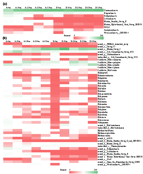 圖1 黃河三角洲河口濕地不同區(qū)域古菌群落熱圖