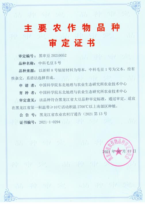 6月11日,由中國科學(xué)院東北地理與農(nóng)業(yè)生態(tài)研究所張秋英研究員研究團(tuán)隊(duì)選育的鮮食大豆品種“中科毛豆5號(hào)”(審定編號(hào):黑審豆20210052)順利通過黑龍江省農(nóng)作物品種審定。