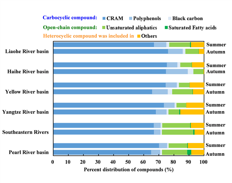 圖1 中國不同流域河口水體中DOM分子組成比例分析