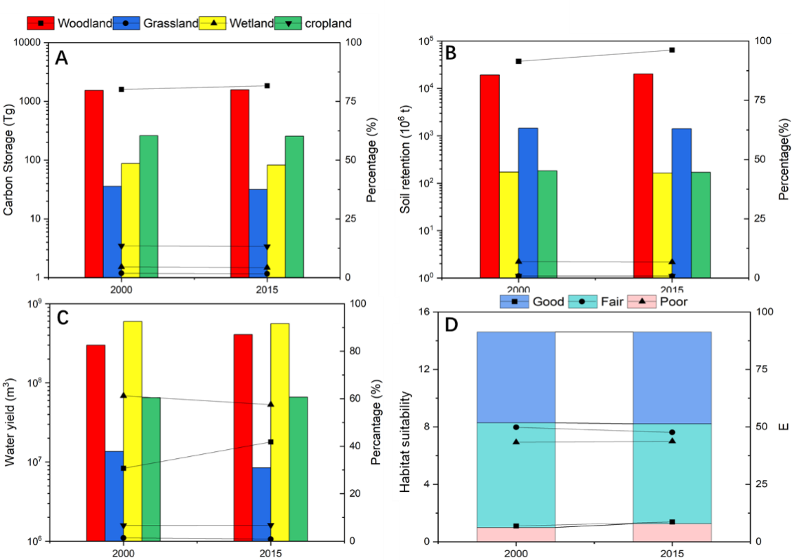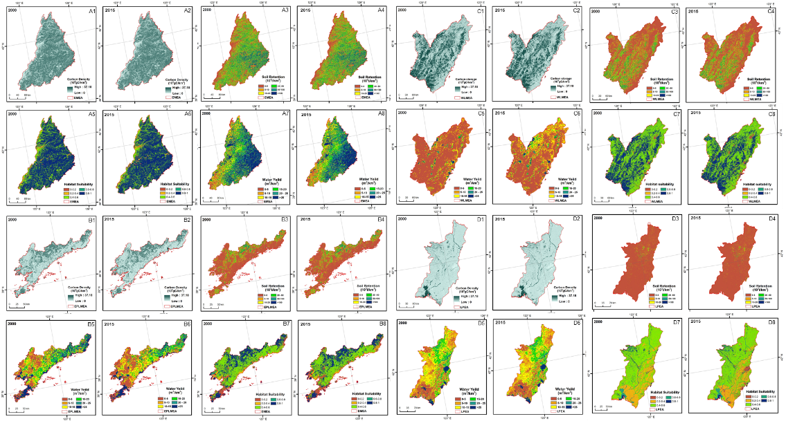 明確生態(tài)系統(tǒng)服務(wù)的時(shí)空變化特征是生態(tài)系統(tǒng)可持續(xù)管理的重要前提。探討多重政策驅(qū)動下生態(tài)保護(hù)工程對區(qū)域生態(tài)系統(tǒng)服務(wù)變化的影響,對于制定區(qū)域可持續(xù)發(fā)展管理決策具有重要的現(xiàn)實(shí)意義。